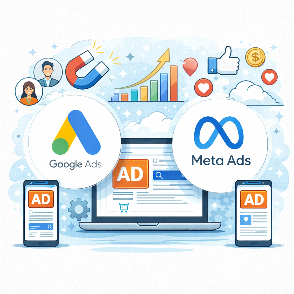 Imprendo offre soluzioni di advertising strategiche e orientate ai risultati, utilizzando le principali piattaforme di pubblicità online: Google Ads e Meta Ads.